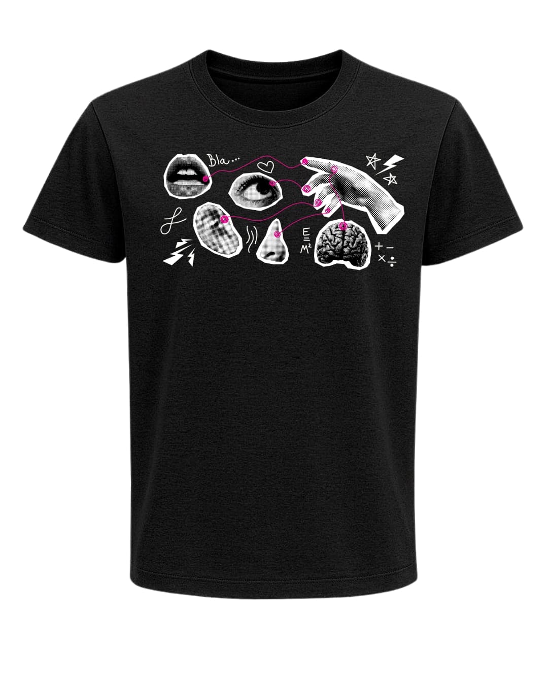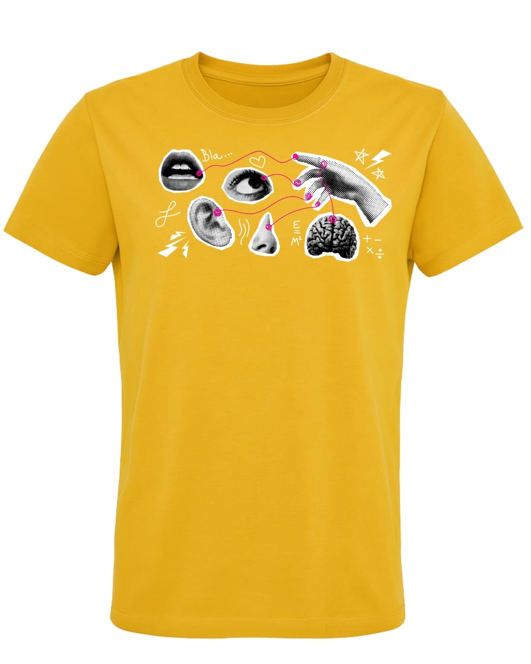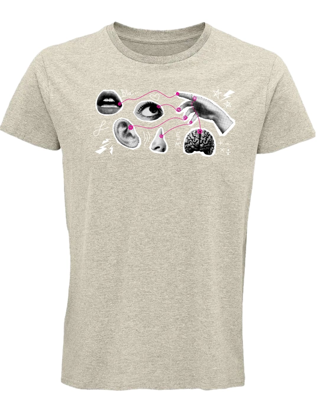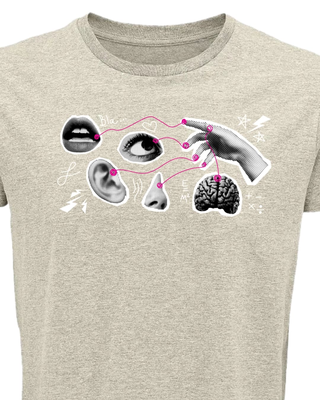 La camiseta algodón orgánico All Senses On – Actívalos todos está hecha para quienes viven intensamente cada estímulo: lo que ven, lo que escuchan, lo que sienten. Es un recordatorio de que estar presente es vivir con todos los sentidos despiertos.