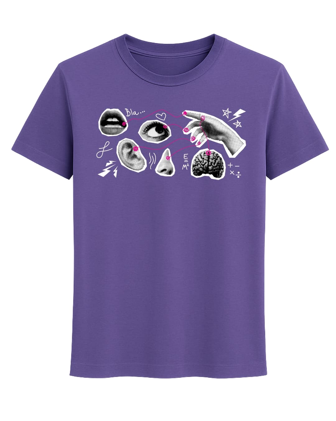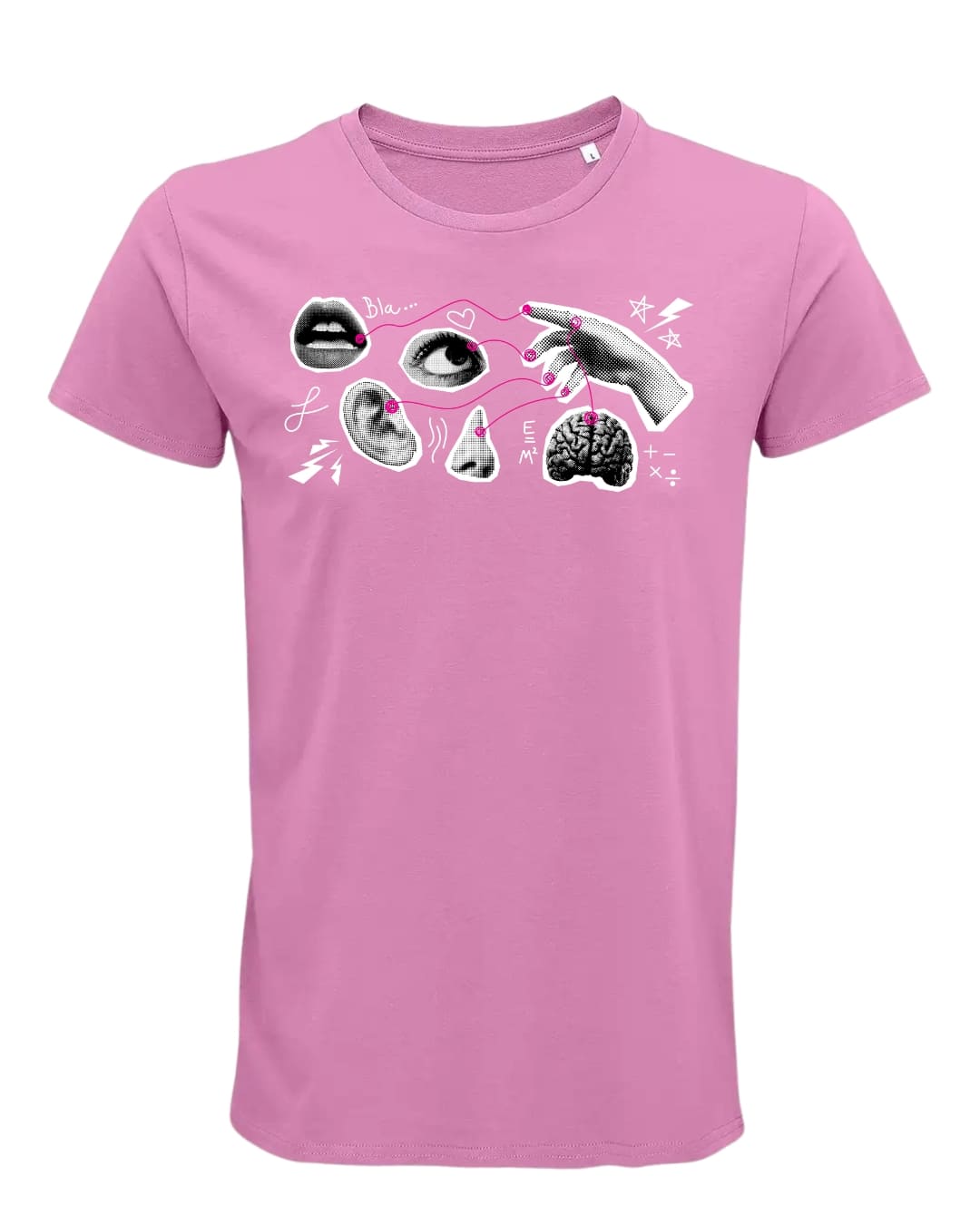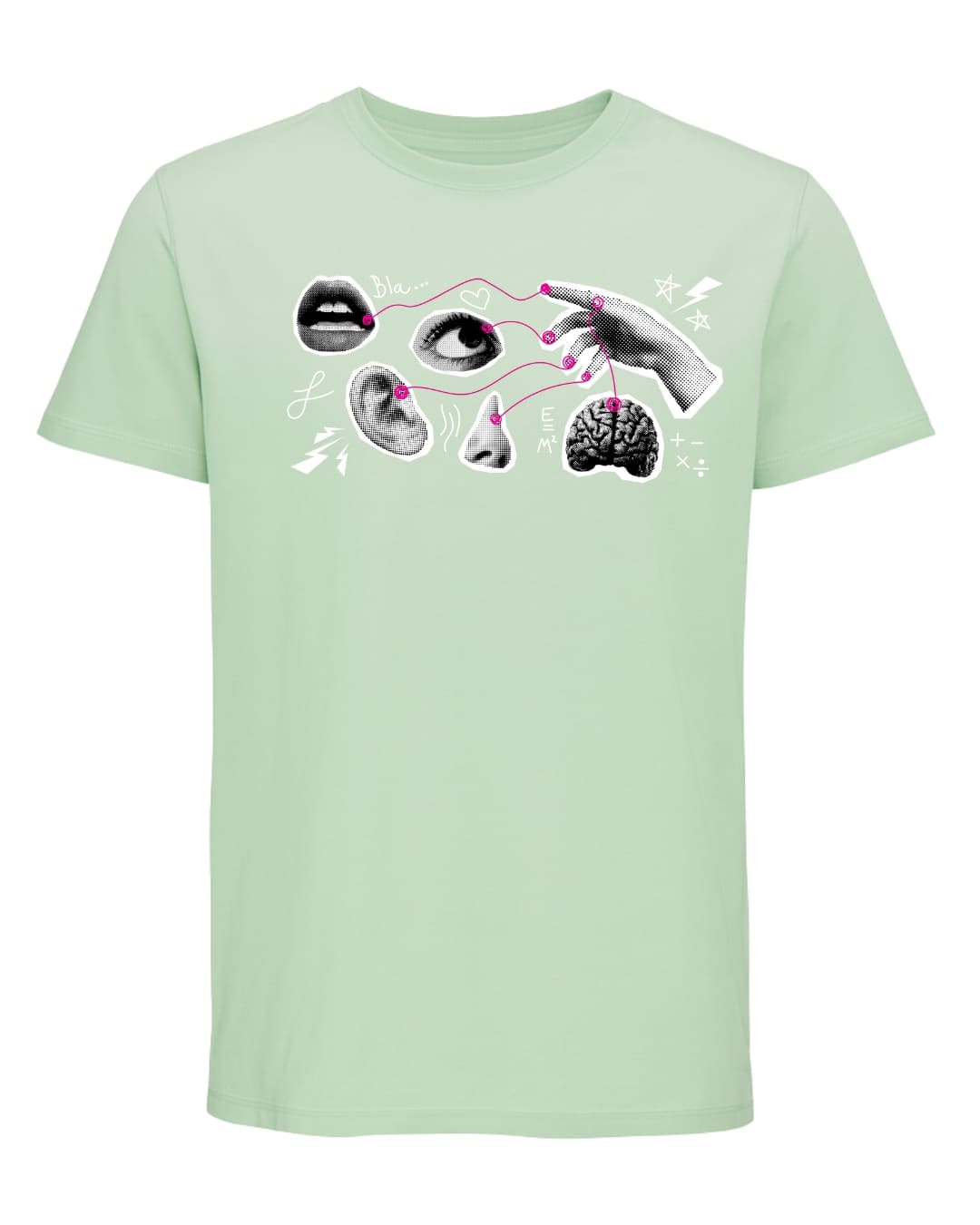 La camiseta algodón orgánico All Senses On – Actívalos todos está hecha para quienes viven intensamente cada estímulo: lo que ven, lo que escuchan, lo que sienten. Es un recordatorio de que estar presente es vivir con todos los sentidos despiertos.