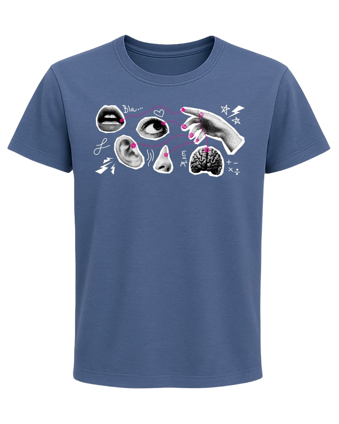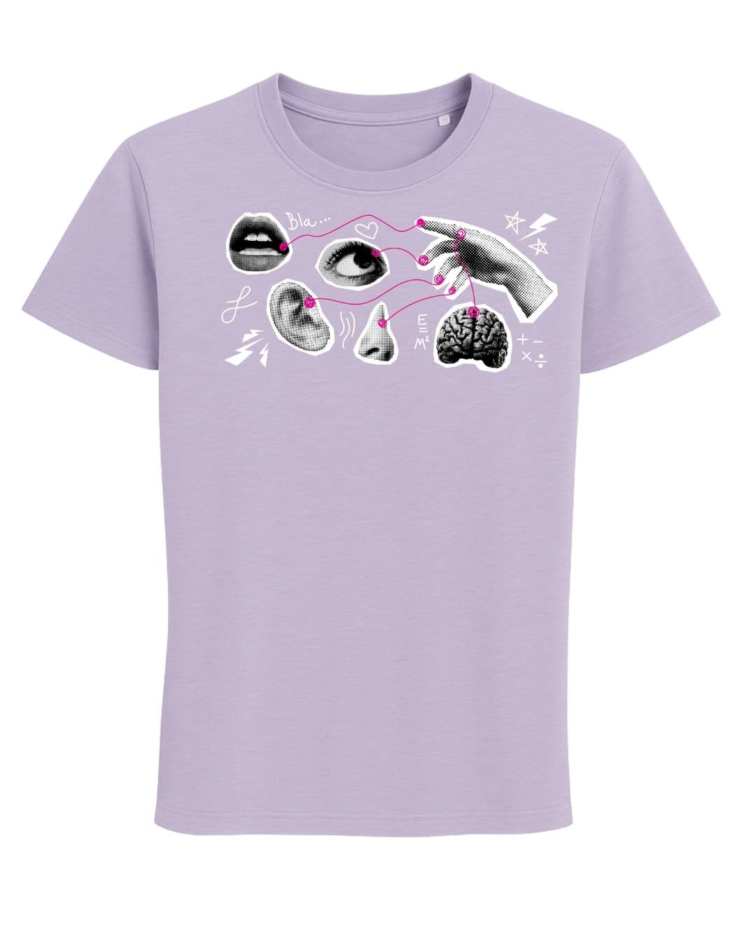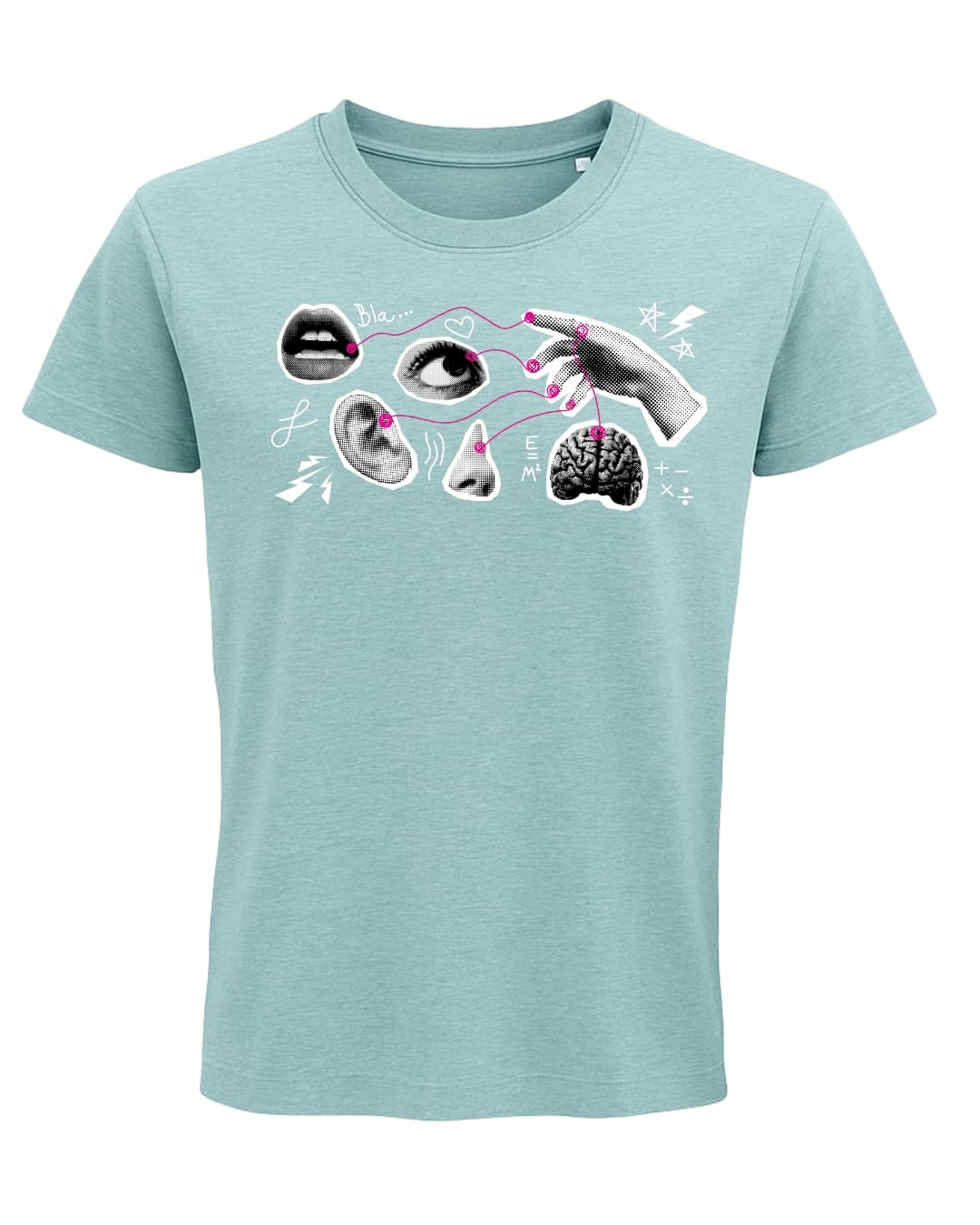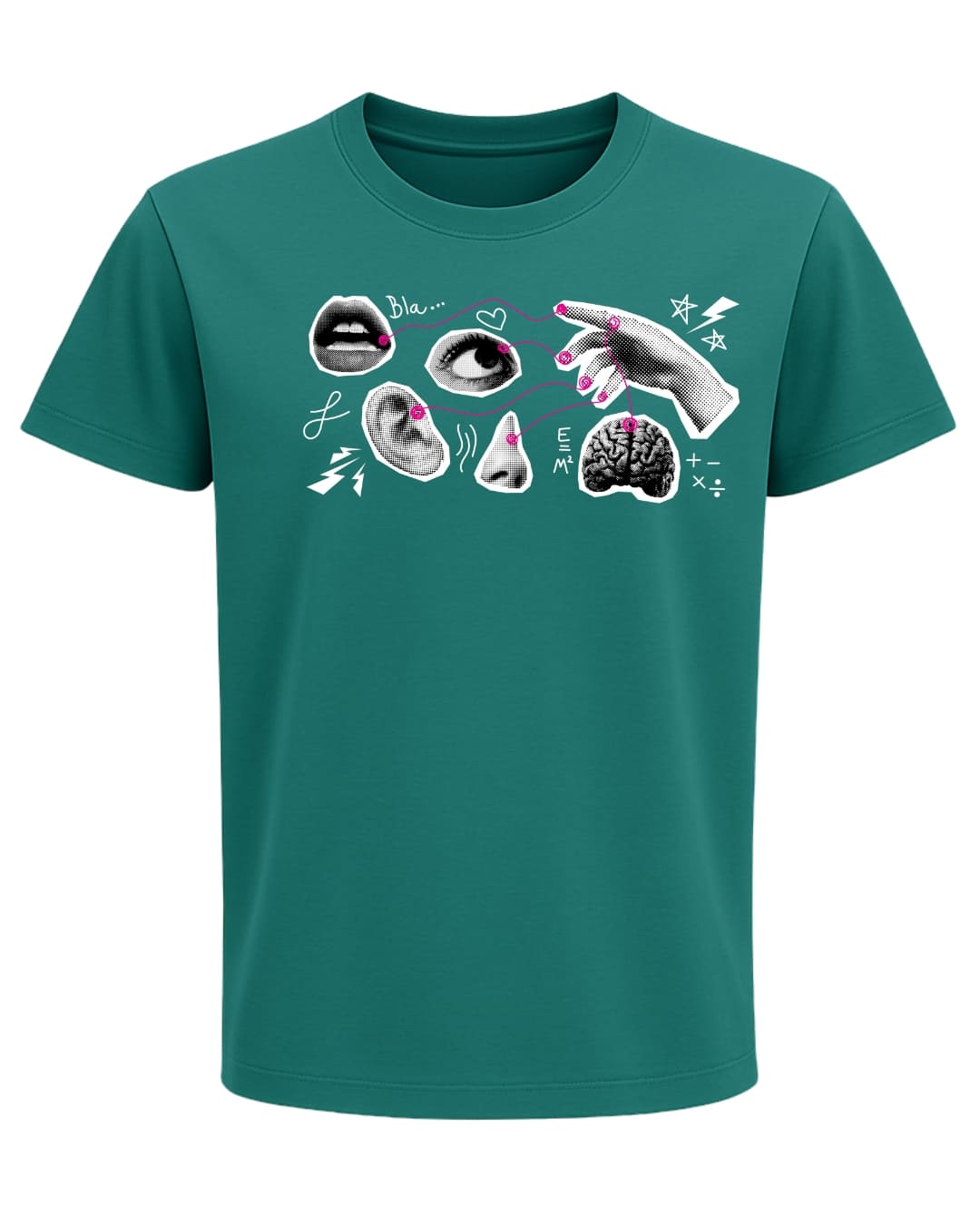 La camiseta algodón orgánico All Senses On – Actívalos todos está hecha para quienes viven intensamente cada estímulo: lo que ven, lo que escuchan, lo que sienten. Es un recordatorio de que estar presente es vivir con todos los sentidos despiertos.