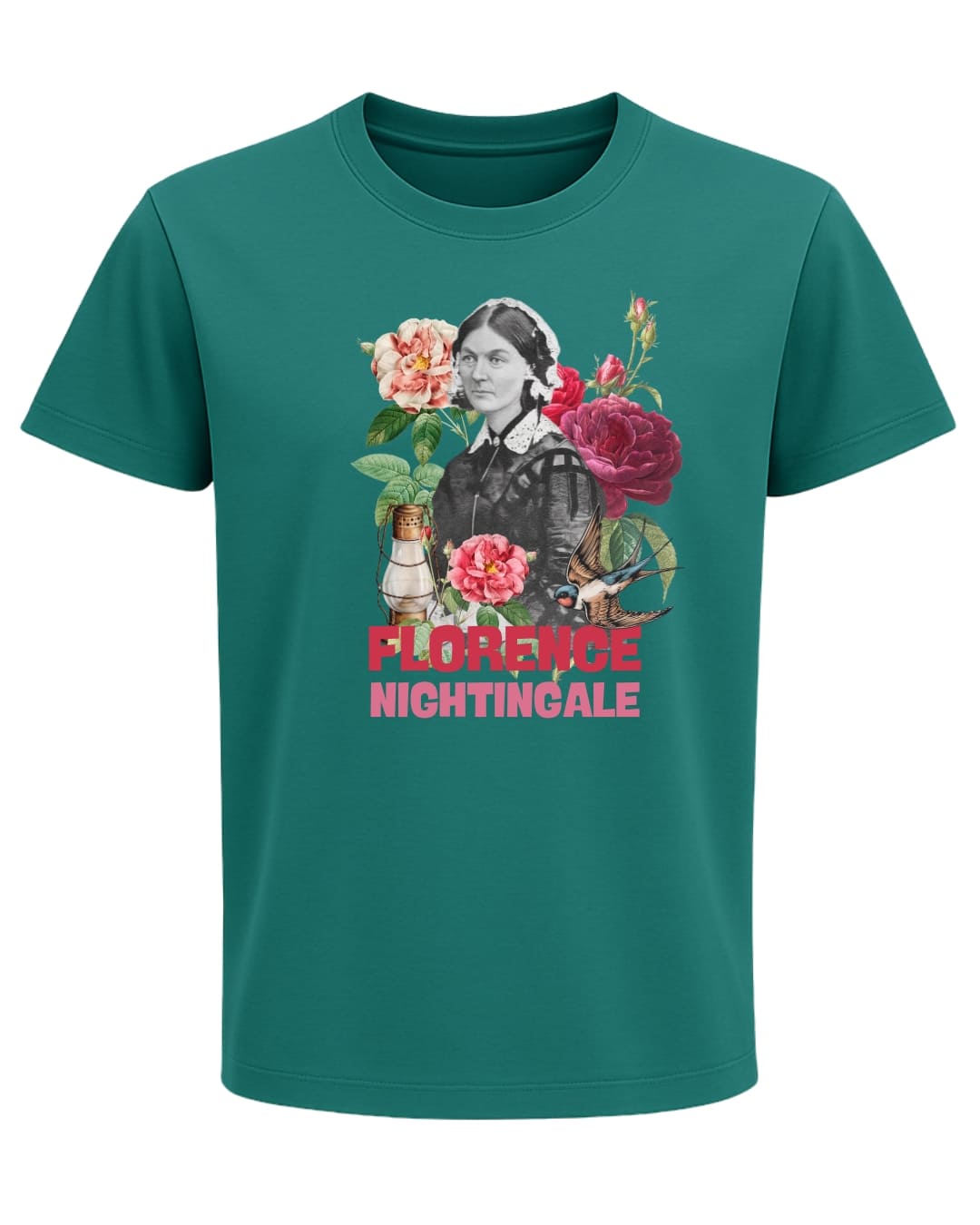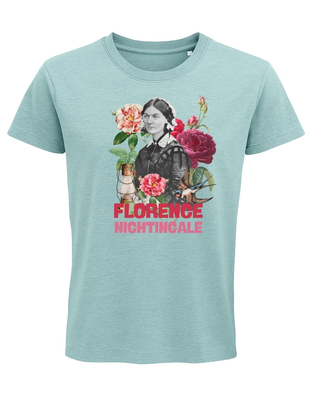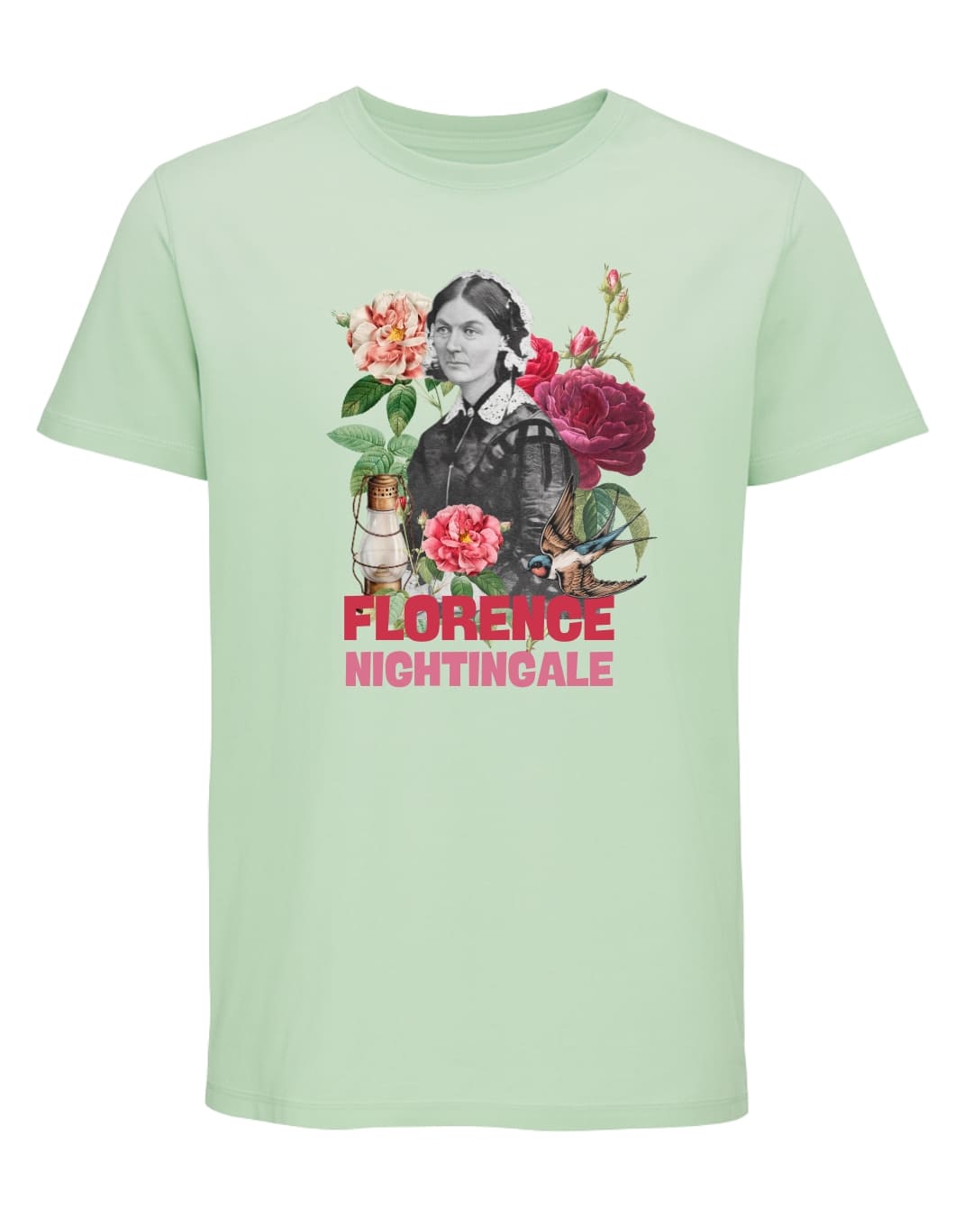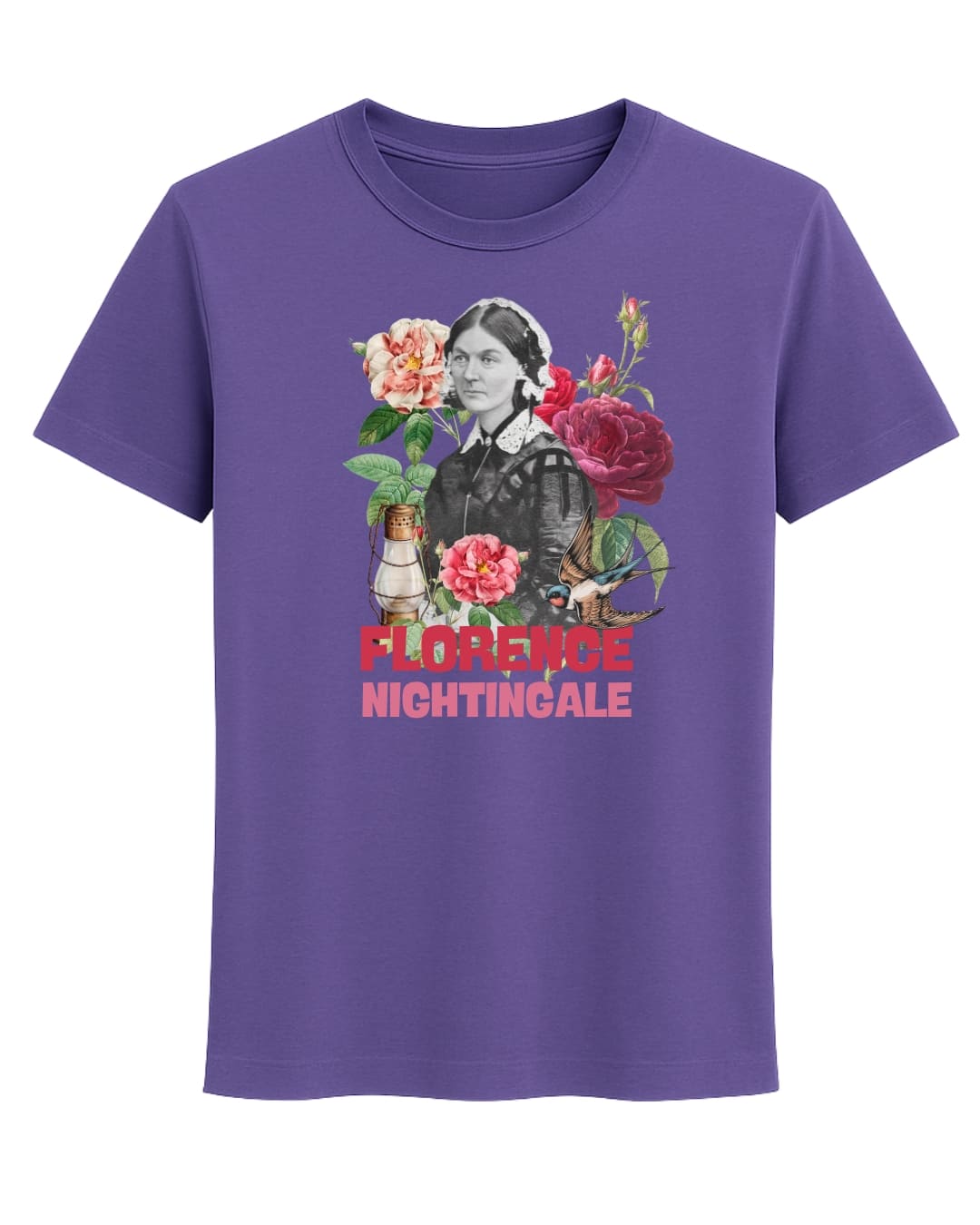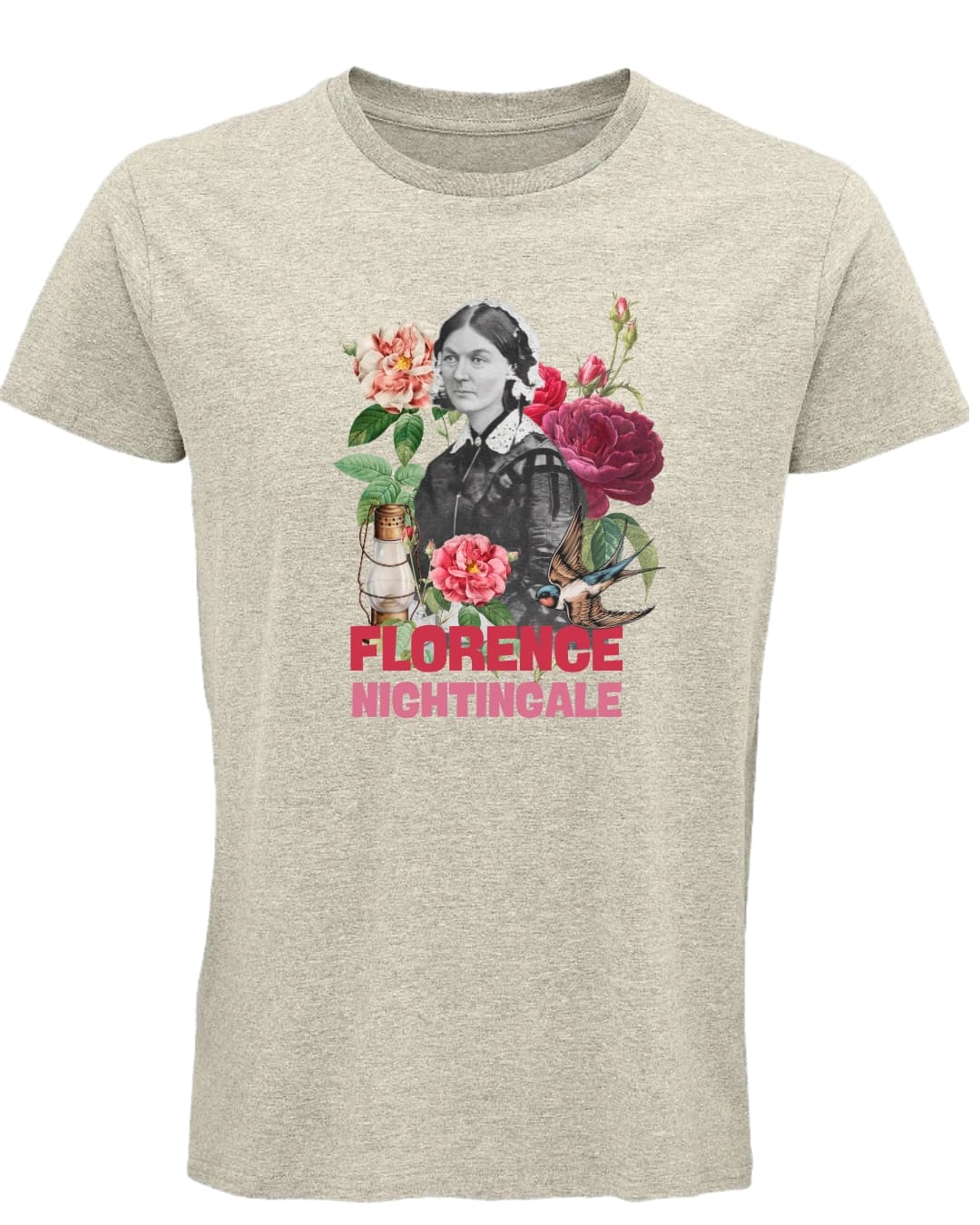 Esta camiseta algod贸n org谩nico rinde homenaje a Florence Nightingale, la mujer que revolucion贸 la enfermer铆a y cambi贸 la historia de la salud, con esta camiseta 煤nica de dise帽o exclusivo.
