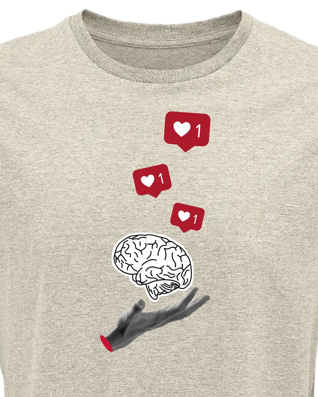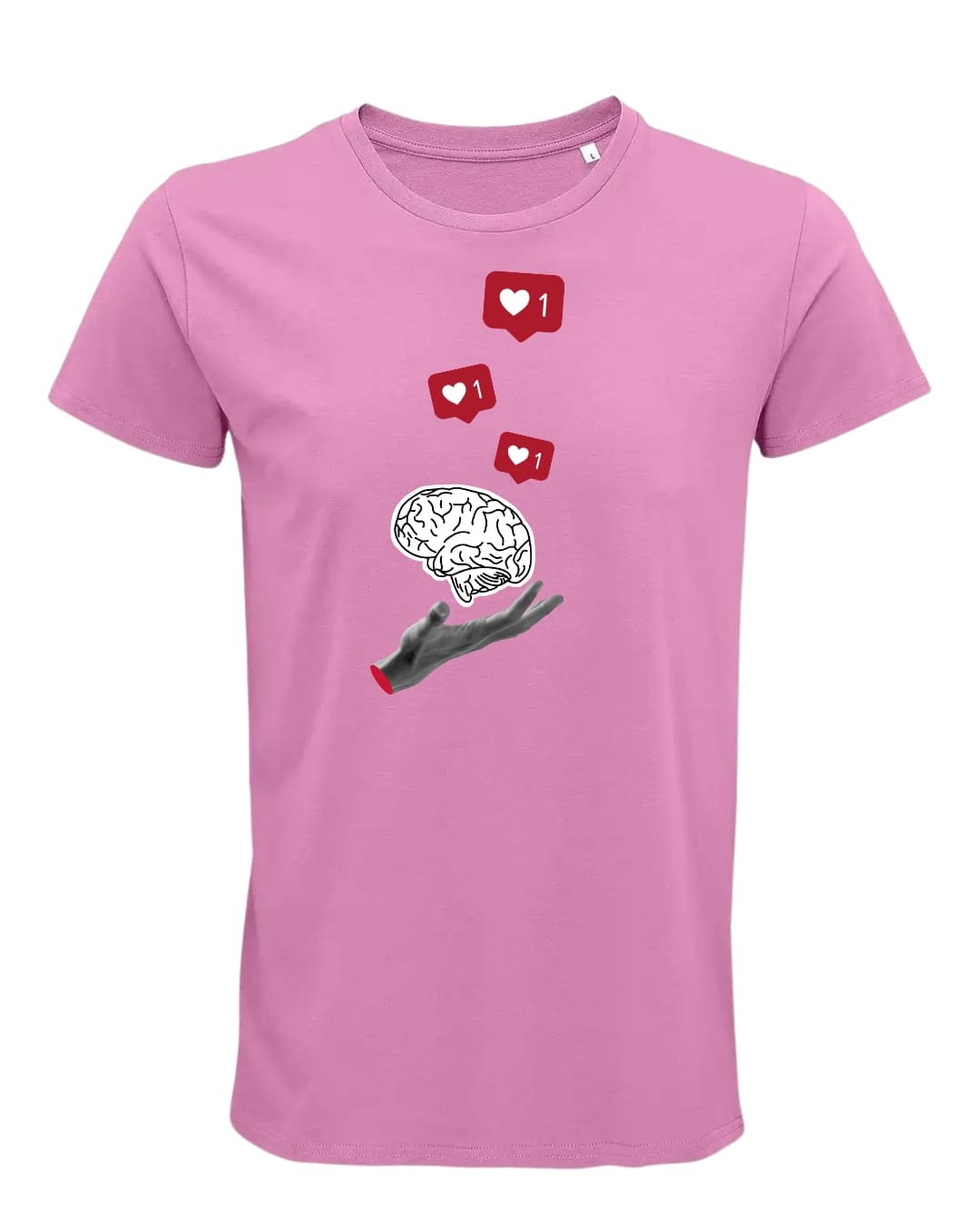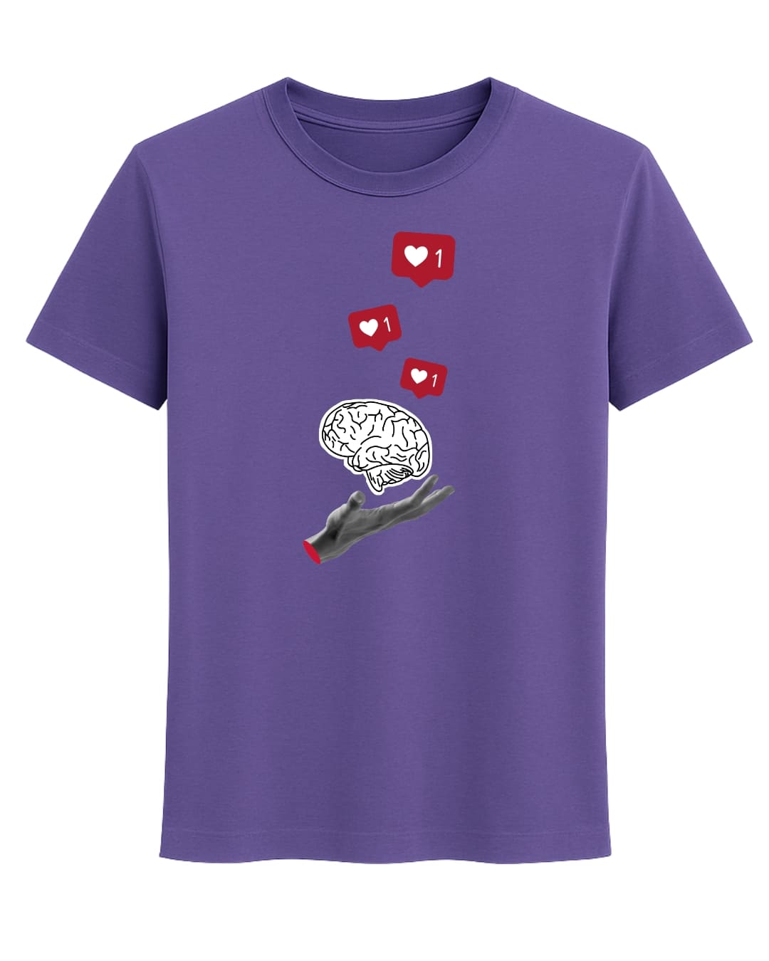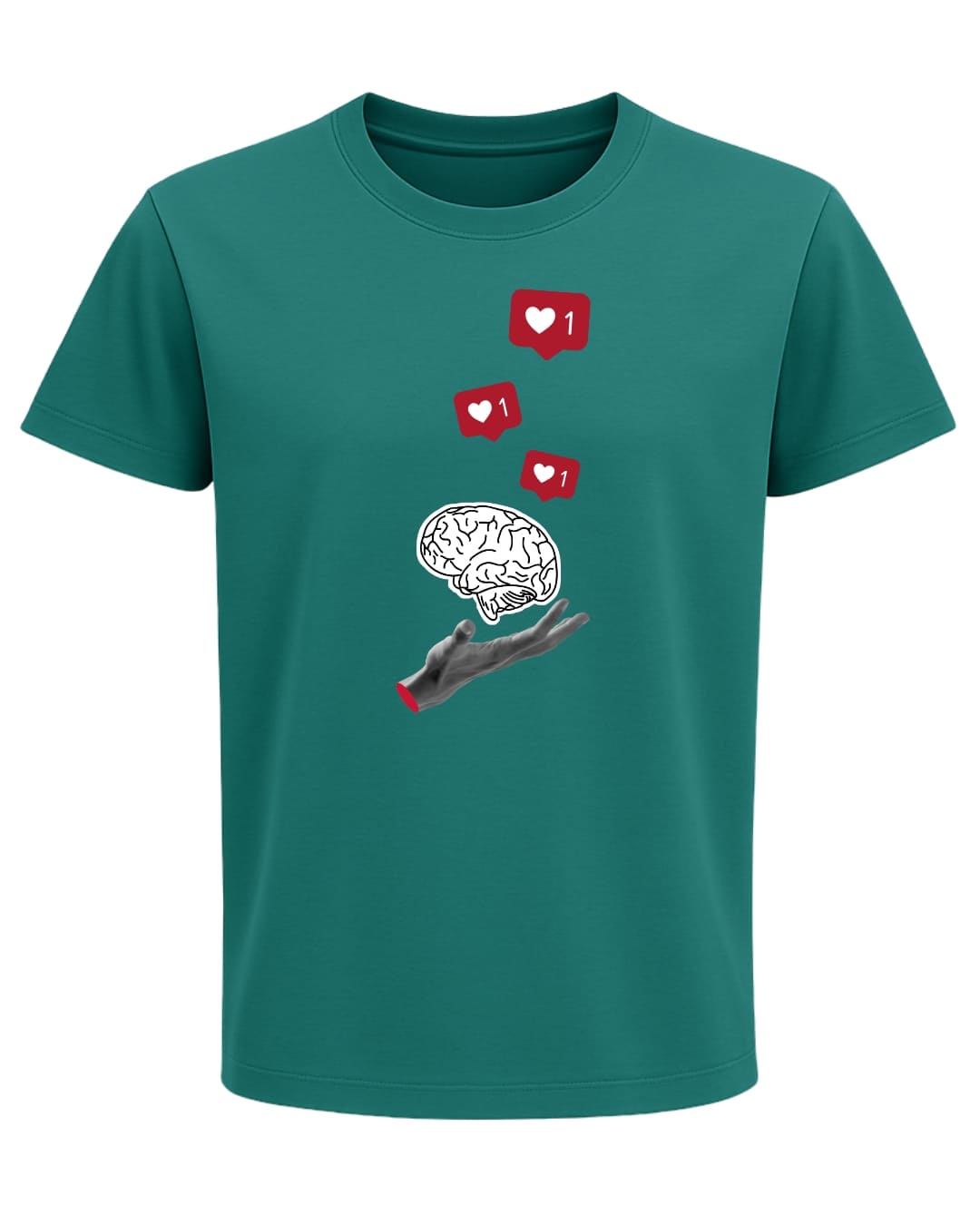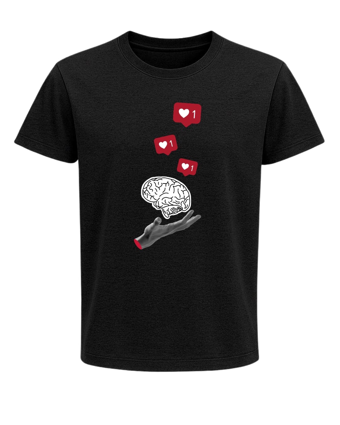 La camiseta algodón orgánico Mind Likes refleja la realidad de nuestra era digital: un cerebro que recibe “likes”, pero que vale mucho más que la validación de una pantalla. Una prenda artística y disruptiva que mezcla crítica social, diseño minimalista y moda urbana. Perfecta para quienes quieren vestir diferente y con mensaje.