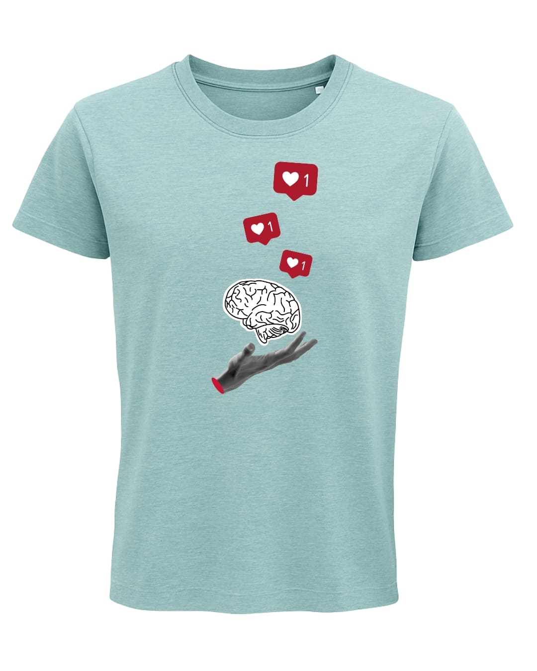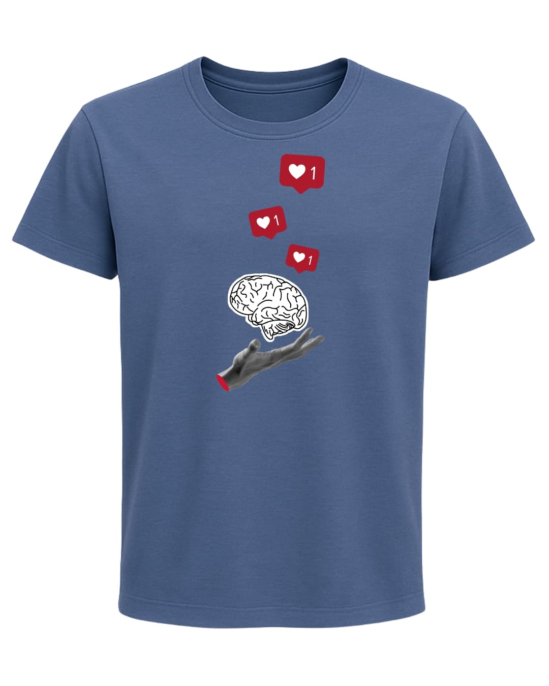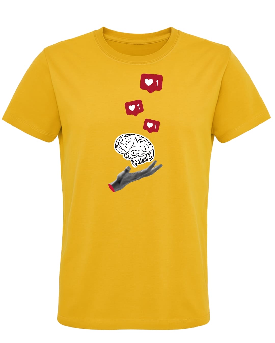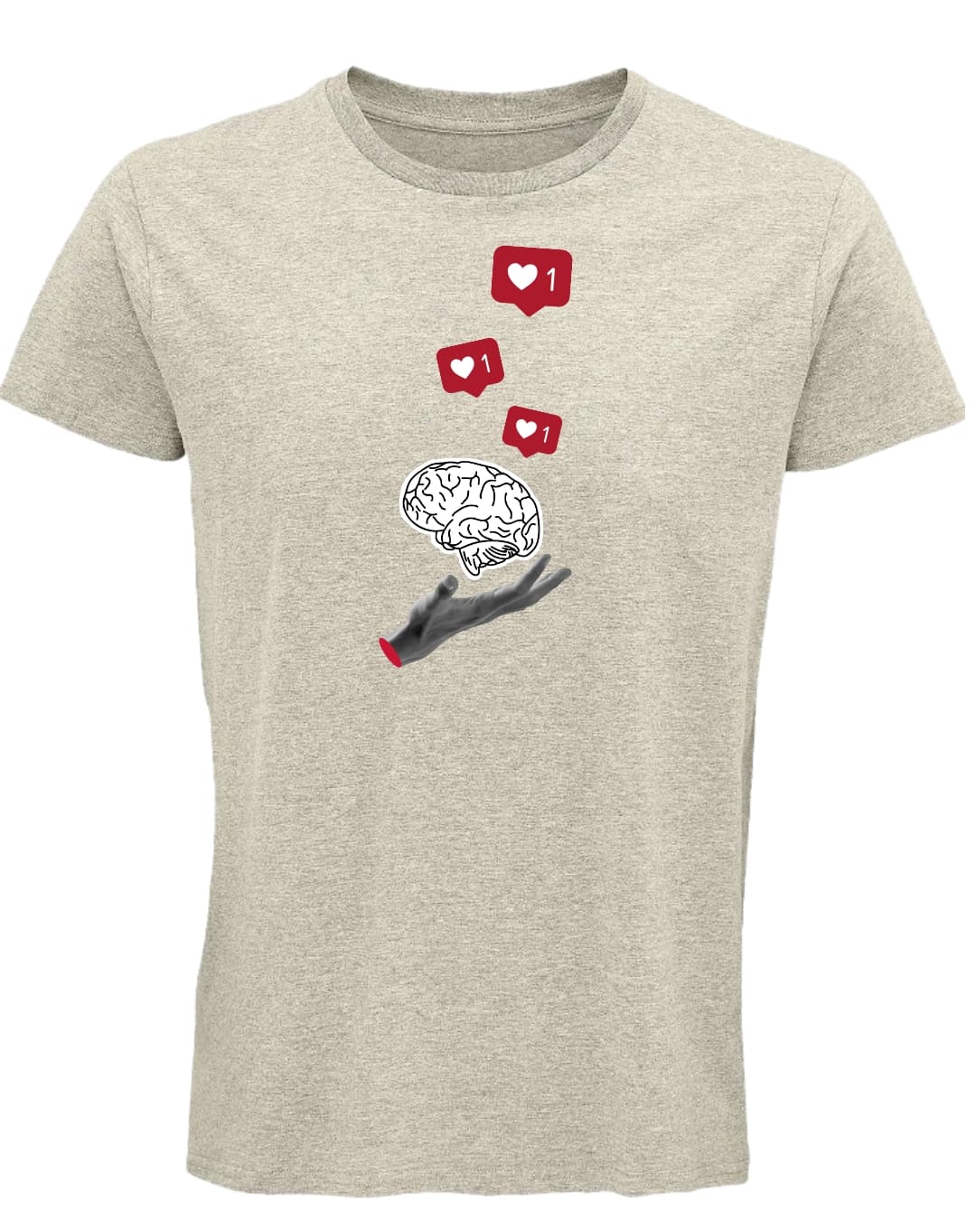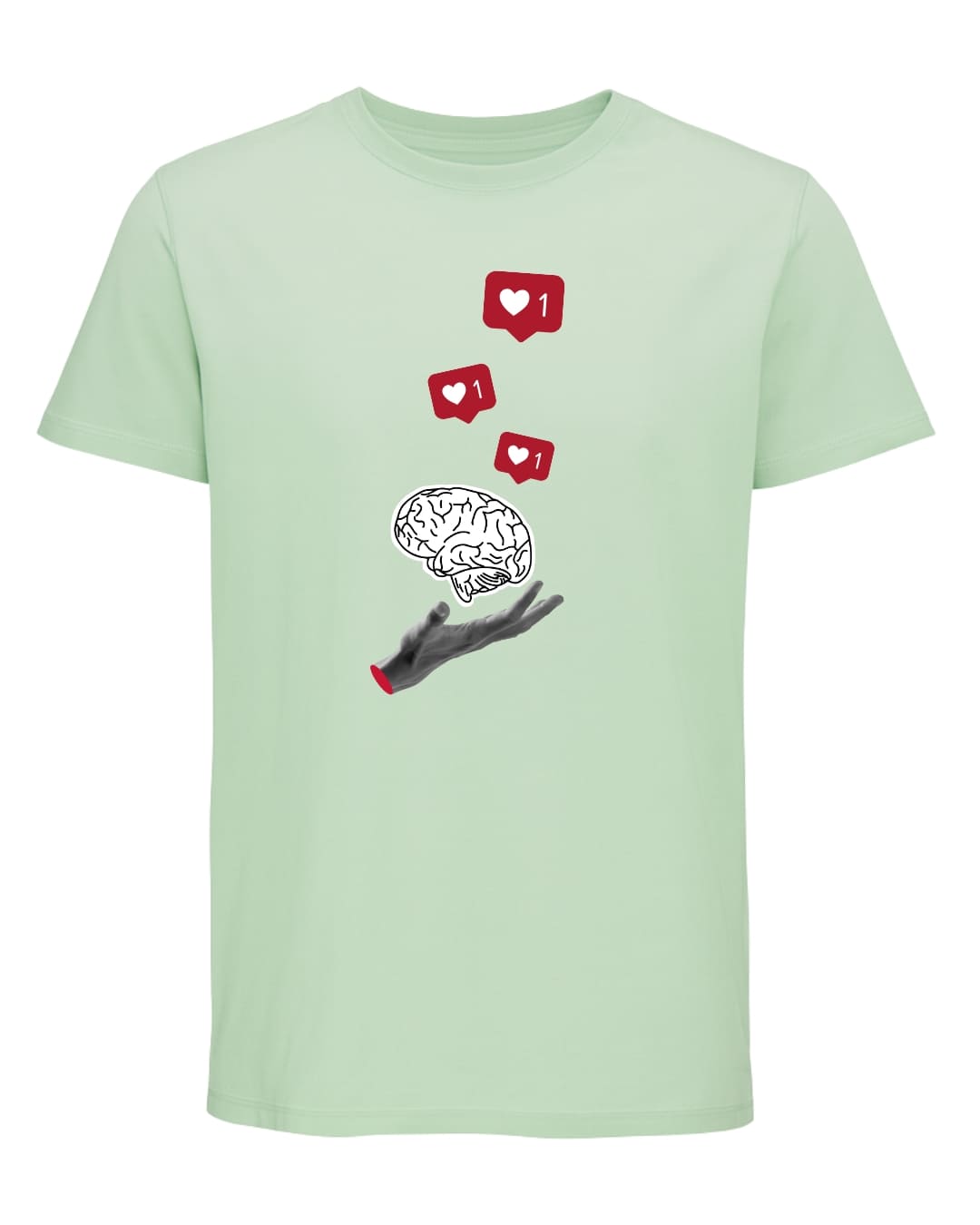 La camiseta algodón orgánico Mind Likes refleja la realidad de nuestra era digital: un cerebro que recibe “likes”, pero que vale mucho más que la validación de una pantalla. Una prenda artística y disruptiva que mezcla crítica social, diseño minimalista y moda urbana. Perfecta para quienes quieren vestir diferente y con mensaje.
