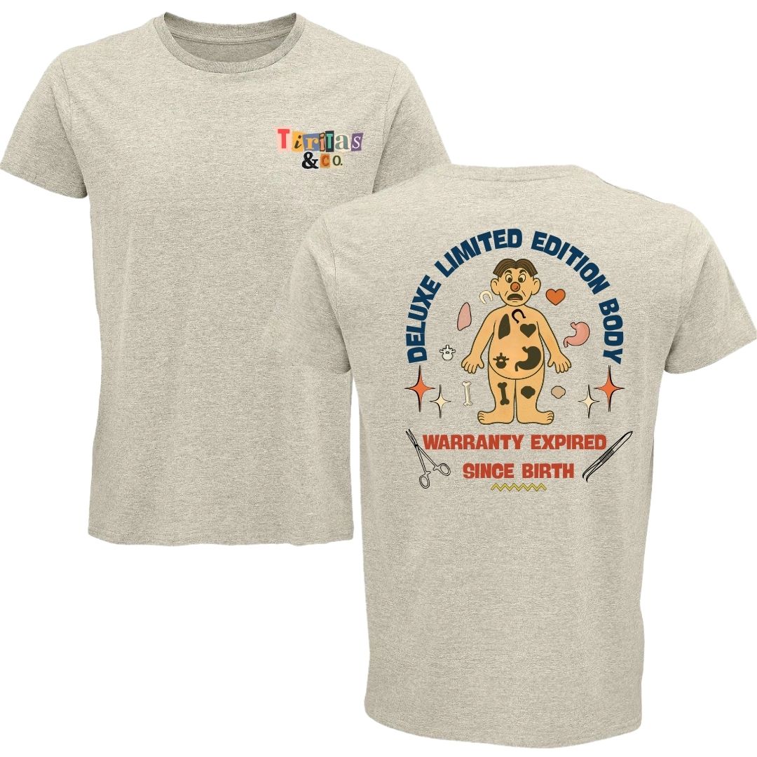 Esta camiseta algodón orgánico convierte el cuerpo humano en un tablero vintage lleno de ironía. Inspirada en el clásico juego Operación, reinterpreta la anatomía con un toque humorístico y un mensaje tan sarcástico como real: “Warranty expired since birth”. El resultado es una prenda cómoda, divertida y cargada de personalidad, pensada para quienes disfrutan de la moda con inteligencia y un punto de rebeldía. Ideal para regalar a profesionales de la salud, amantes de lo retro o cualquier persona que sepa reírse de sí misma y de las pequeñas averías del cuerpo humano.