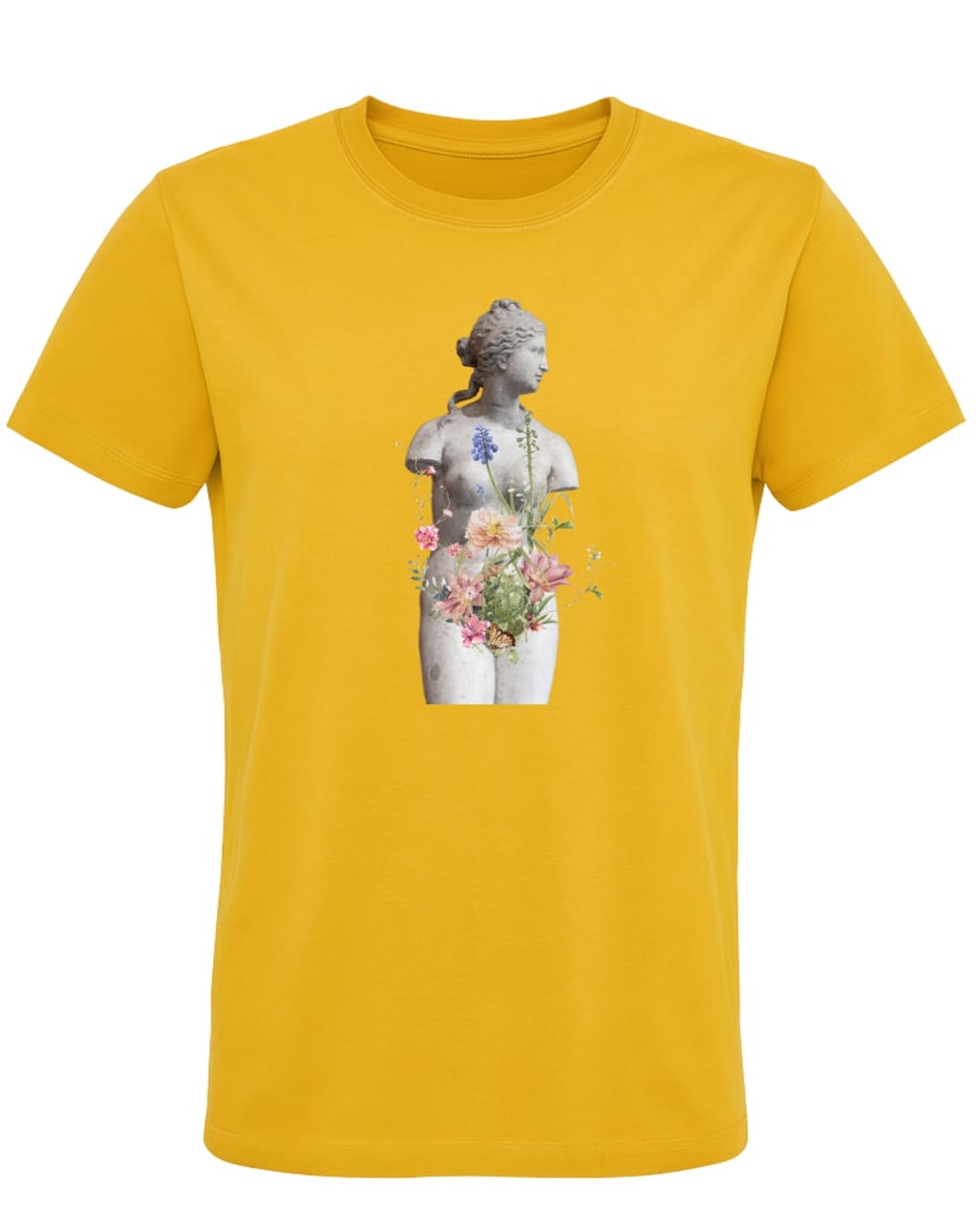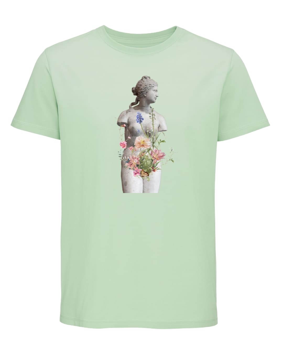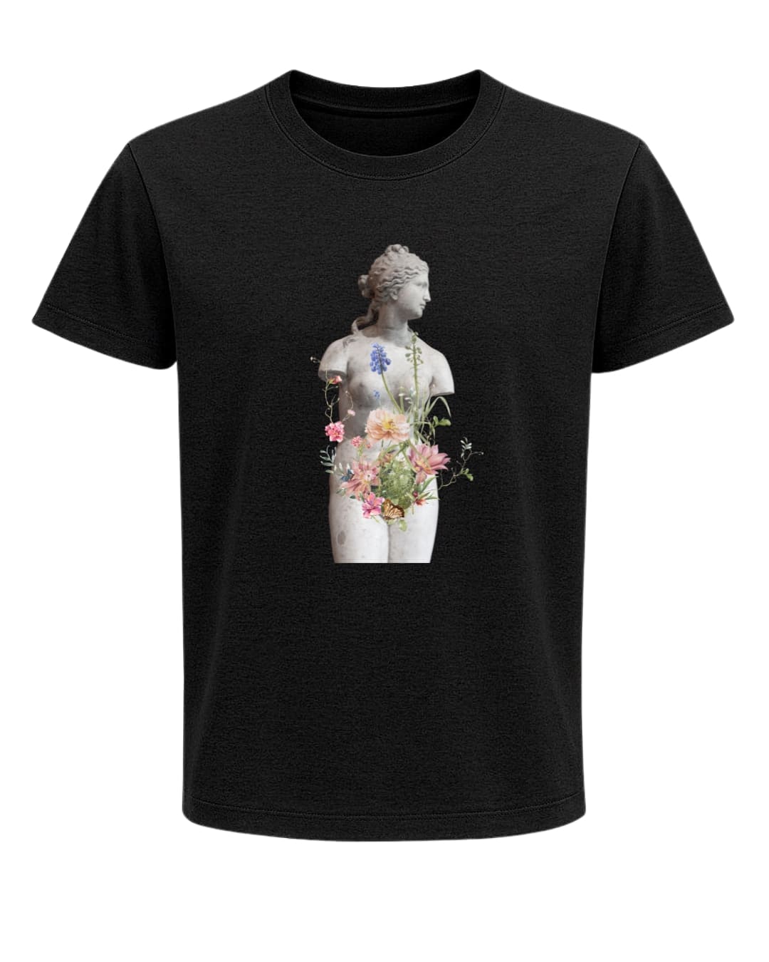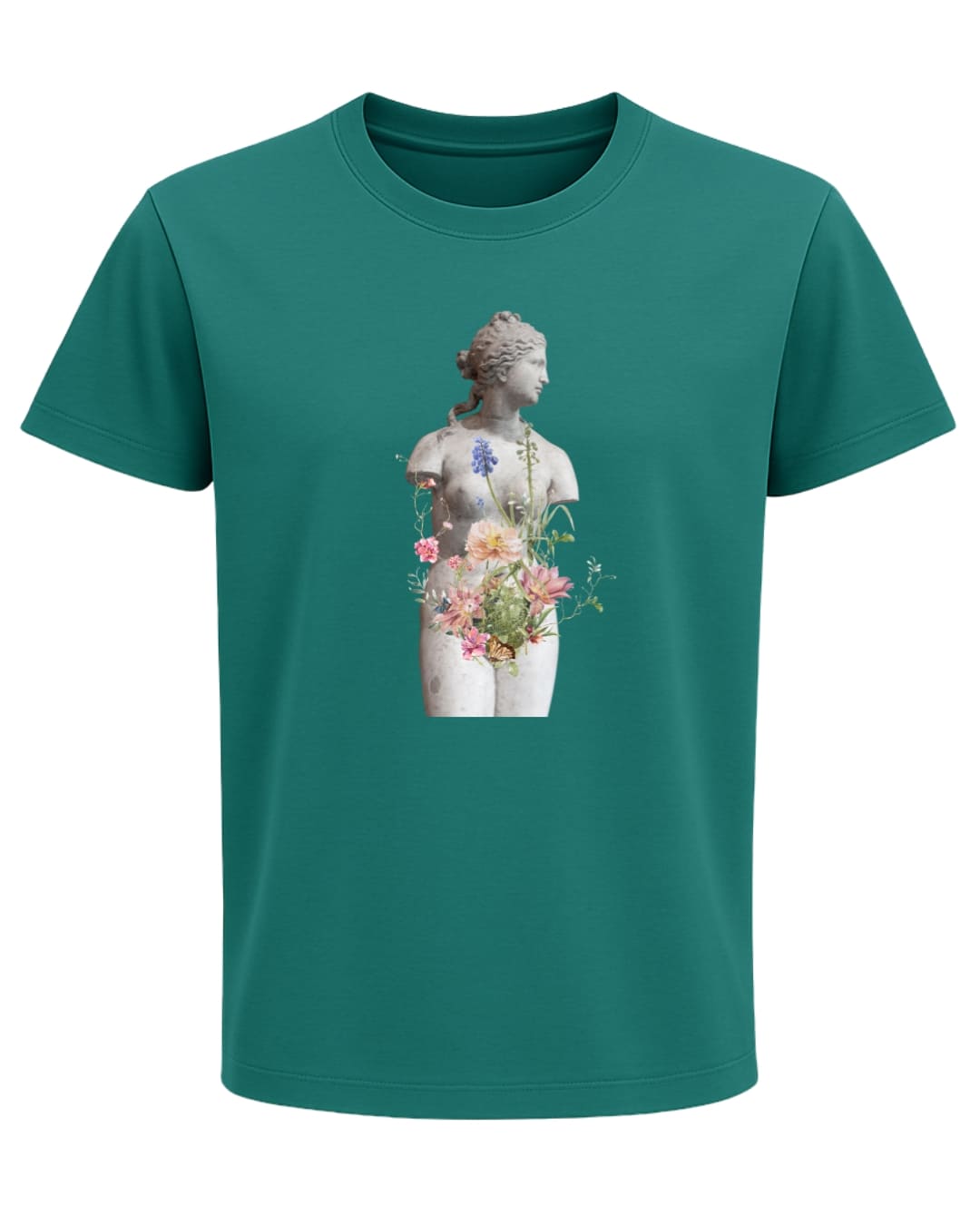 La camiseta algodón orgánico “Renacimiento Interior” es mucho más que una prenda: es una declaración de arte y transformación. Inspirada en la belleza clásica de las esculturas grecorromanas y en la fuerza renovadora de la naturaleza, este diseño muestra cómo de lo aparentemente inerte puede brotar la vida. Una estatua de mármol se convierte en un lienzo donde flores, tallos y mariposas nacen del interior, simbolizando la resiliencia, el cambio y la capacidad infinita de florecer incluso en los momentos más duros.